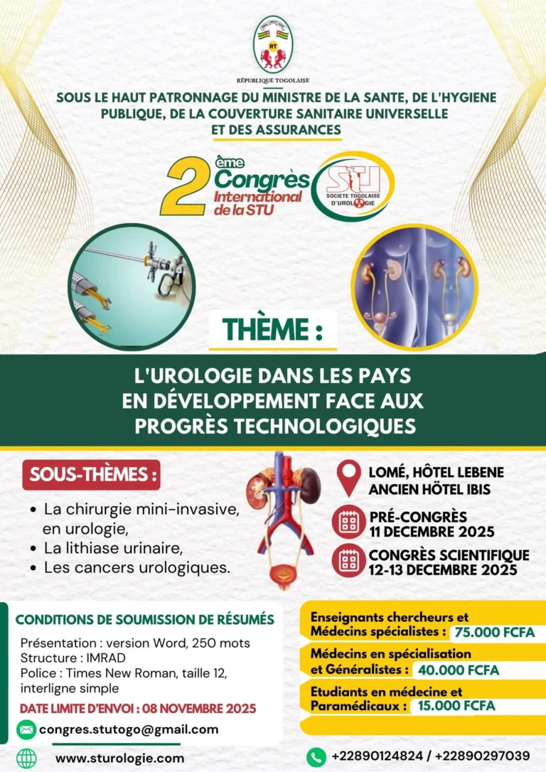 Le 2ème Congrès International de la Société Togolaise d'Urologie (STU), tenu à Lomé du 10 au 13 décembre 2025, a ...